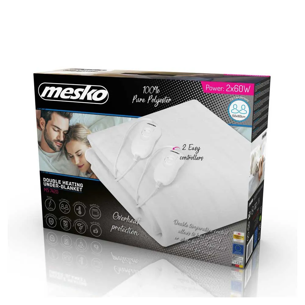Den elektriska filten från Mesko ger dig avslappnande värme och komfort. Den rekommenderas för personer som värnar om sin hälsa. Den elektriska filten lindrar neuralgier, hjälper till att slappna av musklerna och förbättrar blodcirkulationen. Rekommenderas vid behandling av artrit- och reumatiska symptom. Den ger dig snabb och jämn värmefördelning. Detta gör att du kan vila skönt i en varm säng bara några minuter efter att du slagit på den elektriska filten. Filten är gjord av mjuk och skön väv. Du kan enkelt tvätta den efter att du tagit bort temperaturregulatorn och strömsladden. Temperaturregulatorn låter dig välja temperaturnivå och säkerställer överhettningsskydd.