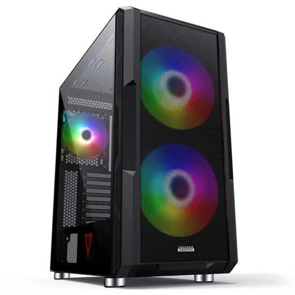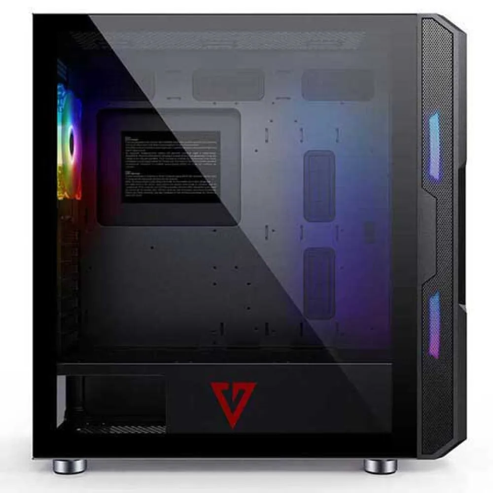 Gångjärnsförsedd sidopanel i härdat glas: En kristallklar, verktygsfri gångjärnsförsedd sidopanel i härdat glas ger en panoramavy över dina komponenter och möjliggör enkel åtkomst för uppgraderingar och underhåll.
