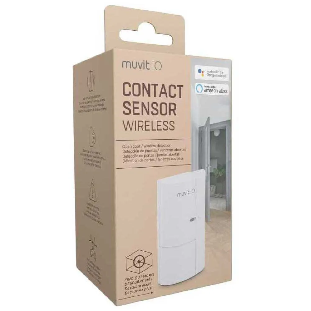 Kontaktgivare för dörrar och fönster för säkerhetssystem muvit iO. Detta består av två delar som gör det möjligt att upptäcka dörrar och fönster som kan öppnas. Kompatibel med Google och Amazon Alexa Assistant.