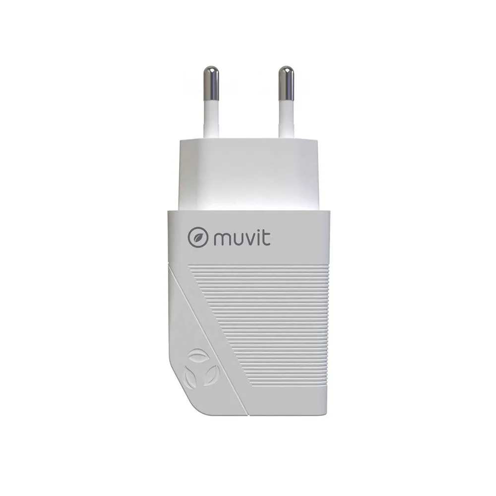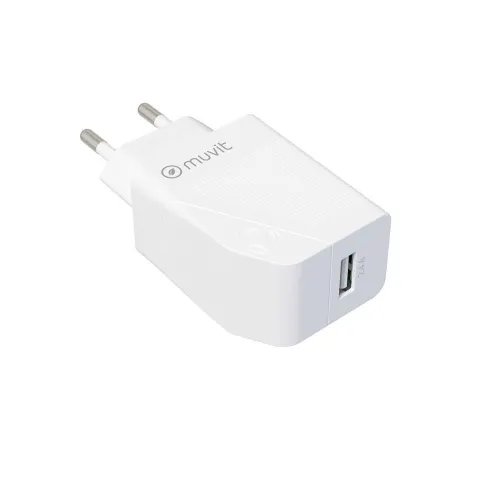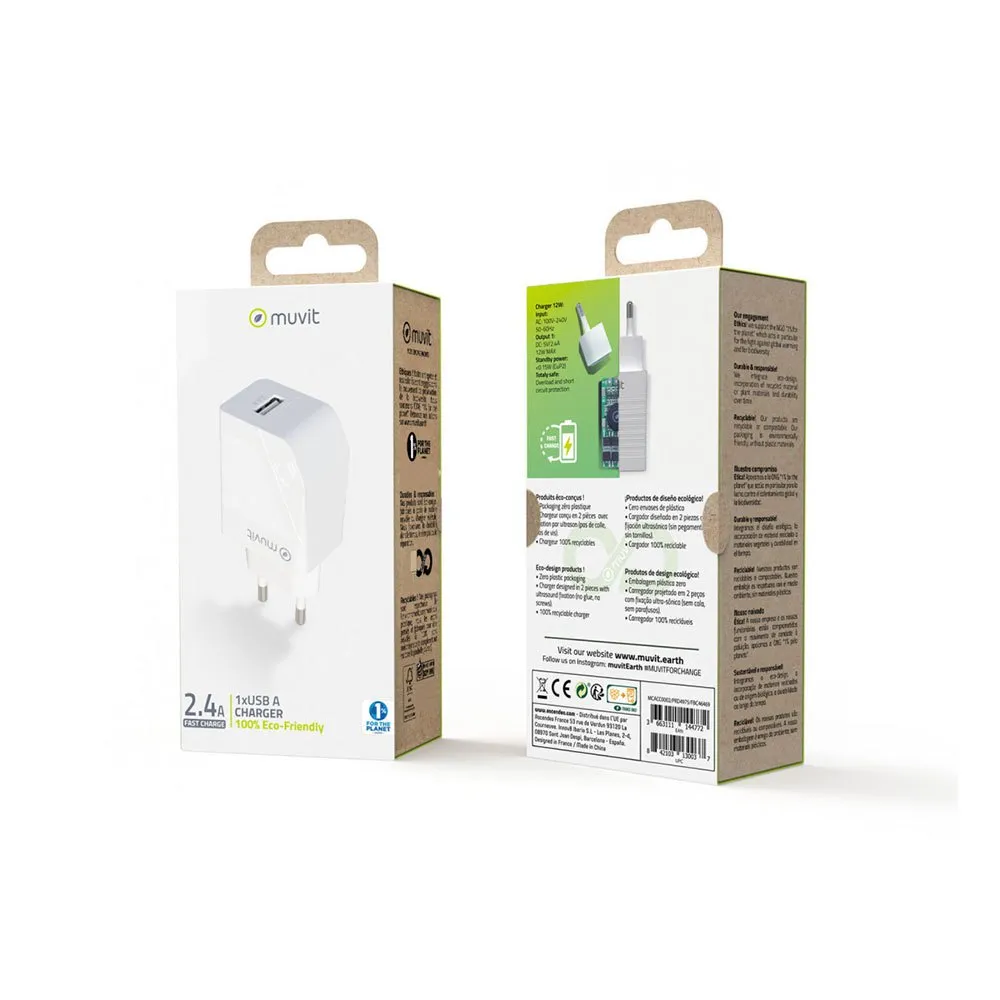 Muvit transformator för byte med europeisk kontakt, 1 USB 2.4A 12W och 100% återvinningsbar.