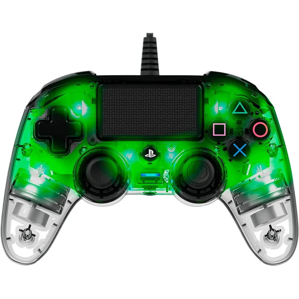 NACON PS4OFCPADCLGREEN. Enhetstyp: Spelplatta, Spelplattformar som stöds: PlayStation 4, Funktionsknappar för spelkontroll: Delningsknapp. Anslutningsteknik: Wired. Produktfärg: Grön, Transparent, Kabellängd: 3 m. Bredd: 170 mm, Djup: 205 mm, Höjd: 65 mm. Förpackningsbredd: 65 mm, Förpackningsdjup: 170 mm, Förpackningshöjd: 220 mm
