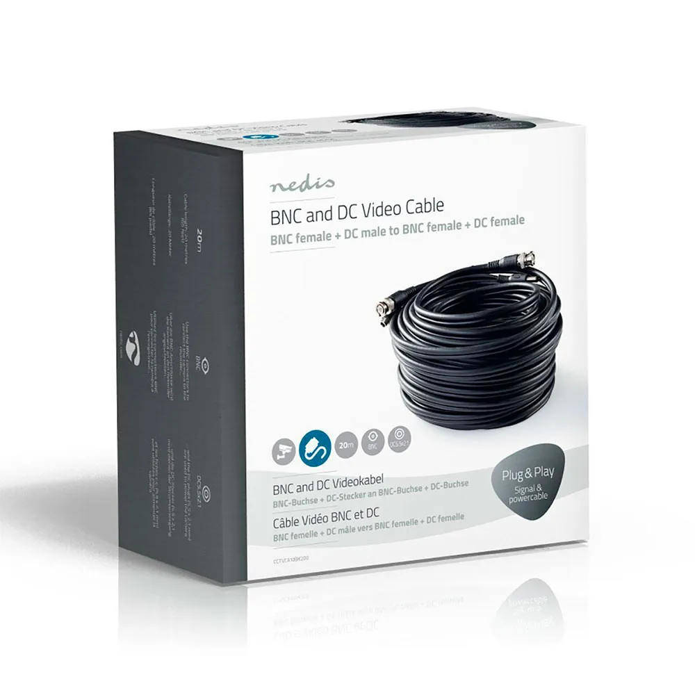 - Universellt kompatibel med de flesta CCTV-kameror, DVR:er och nätadaptrar som använder BNC- och DC-anslutningar. Perfekt för både gör-det-själv-entusiaster och professionella installatörer, NEDIS CCTV-säkerhetskabel är det idealiska valet för nya installationer, systemuppgraderingar eller utökning av ditt befintliga säkerhetsnätverk.