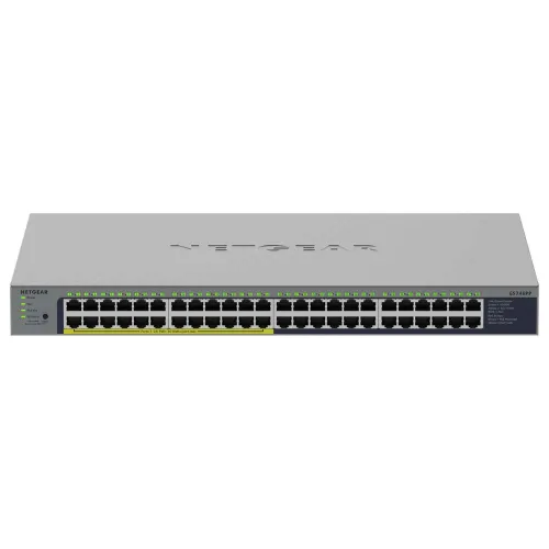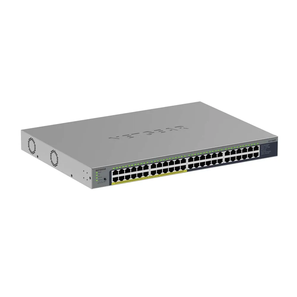 48 x Gigabit Ethernet ports with 24 ports of PoE+ Plug and play switch, no management required Energy Efficient Ethernet for maximum power savings Dynamic fans for quiet operation Rackmount or desktop.