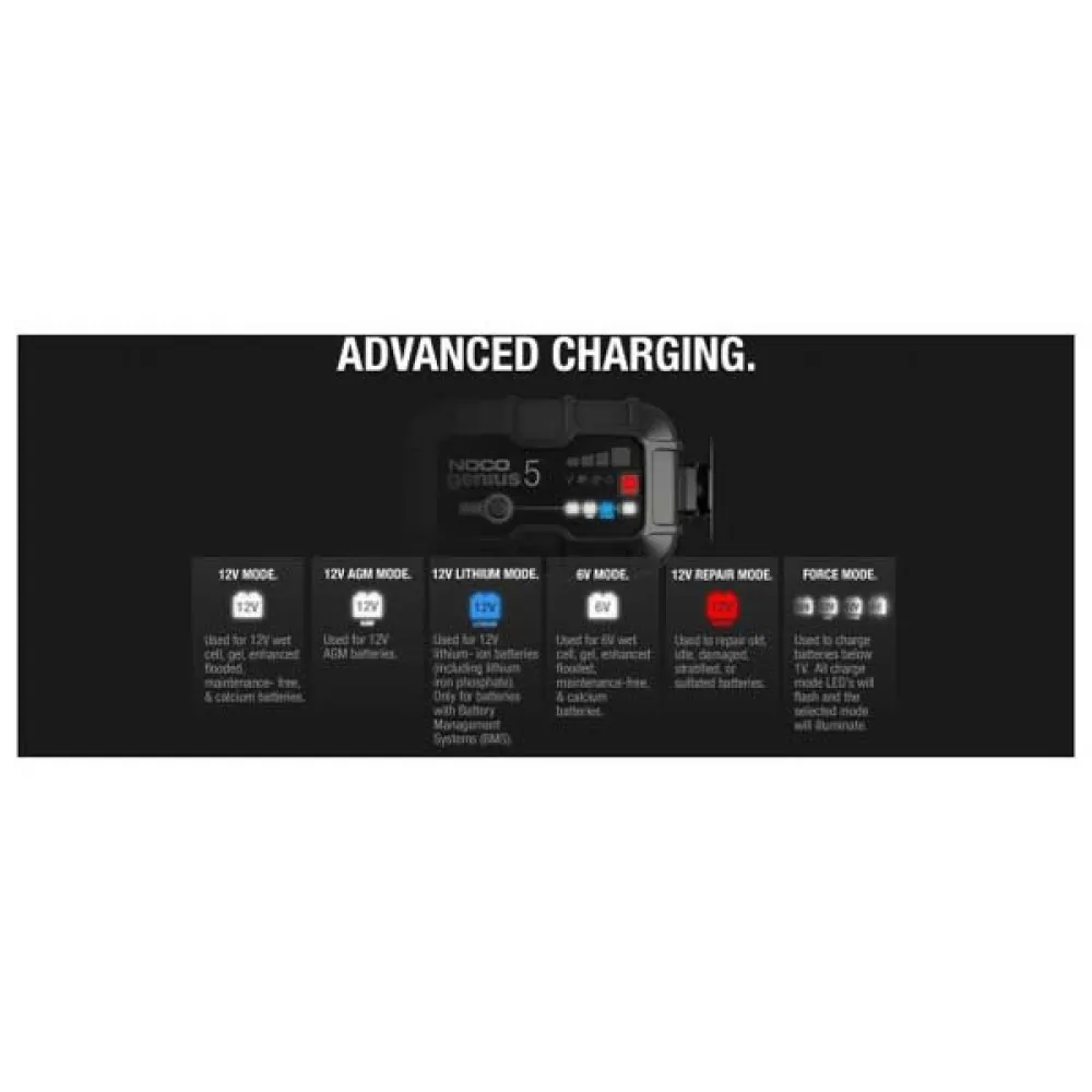 Egenskaper för Noco Genius 5 batteriladdare 5A