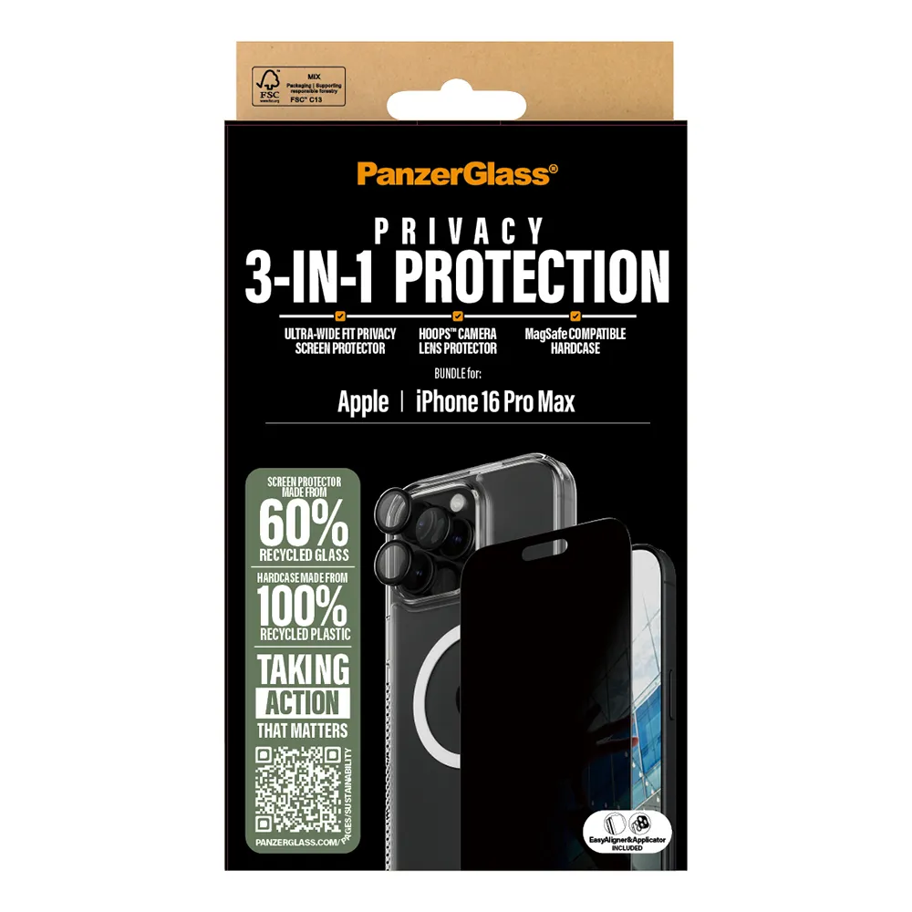 PanzerGlass ® 3-i-1 Privacy Protection Bundle iPhone 16 Pro Max.