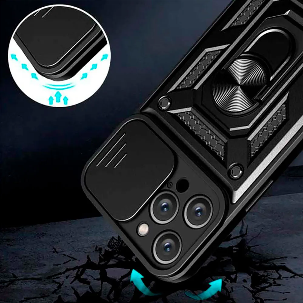 Förutom att kombinera en slående design gjord med robusta material, inkluderar detta skal skydd för kameramodulen och en magnetisk roterande ring.