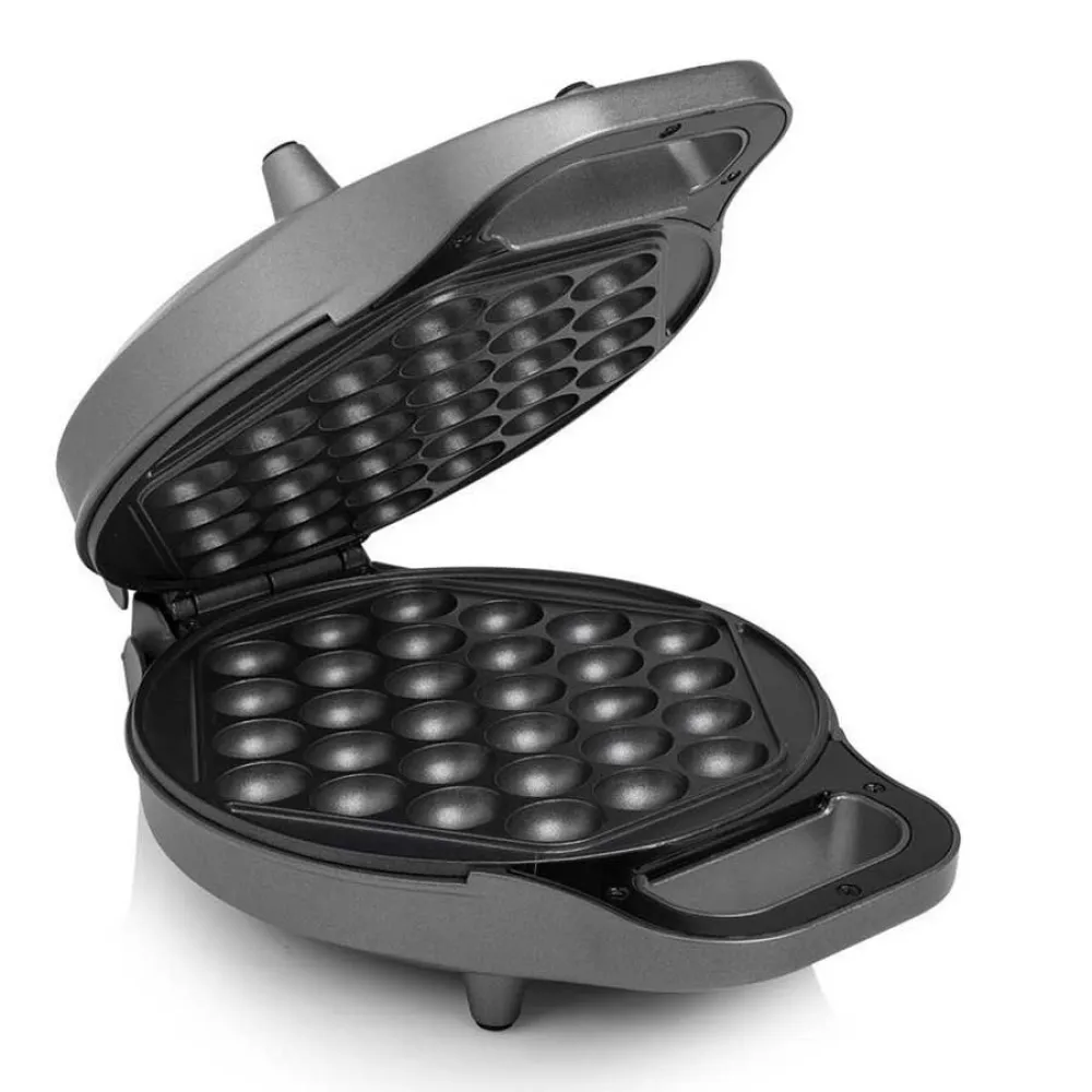 Du har säkert redan sett dem, bubbelvåfflorna. Nu kan du göra dessa trendiga och läckra våfflor hemma med Princess Bubble Waffle Maker. Tack vare den innovativa designen kommer våfflan ut i sin typiska hexagonala form med bubbelstruktur. Efter det kan du välja din favorit-topping som frukt, choklad, glass, kola eller till och med lax och färskost och skapa din unika kreation.