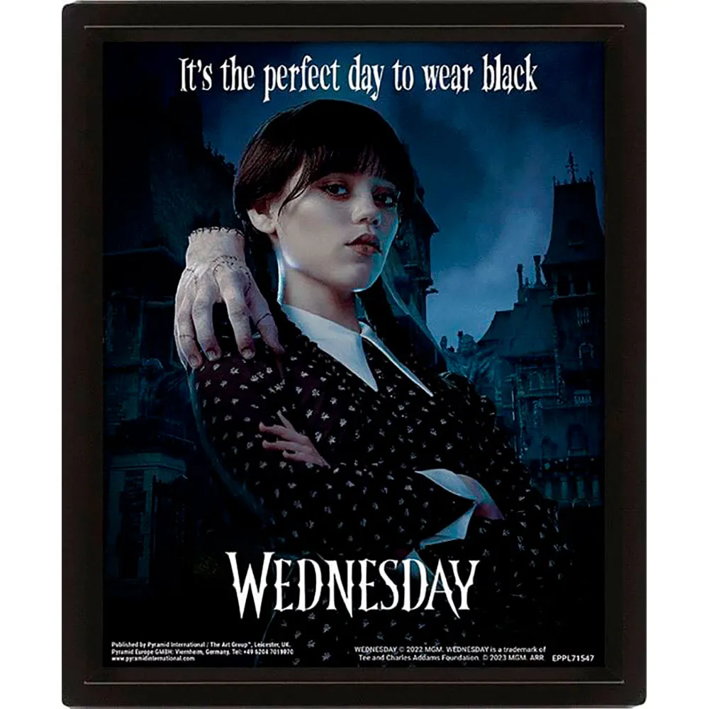 Denna högkvalitativa PYRAMID 3D Lenticular-poster är mer än bara en dekorativ detalj; det är en samtalsstartare och ett bevis på ditt fandom. Perfekt för sovrum, studentrum, hemmakontor eller vilket utrymme som helst som är tillägnat att fira Wednesdays mörkt förtjusande värld, kommer denna poster garanterat att imponera. De livfulla färgerna och intrikata detaljerna fångar essensen av den populära serien och visar upp Wednesdays ikoniska gotiska stil och den mystiska atmosfären i Nevermore.