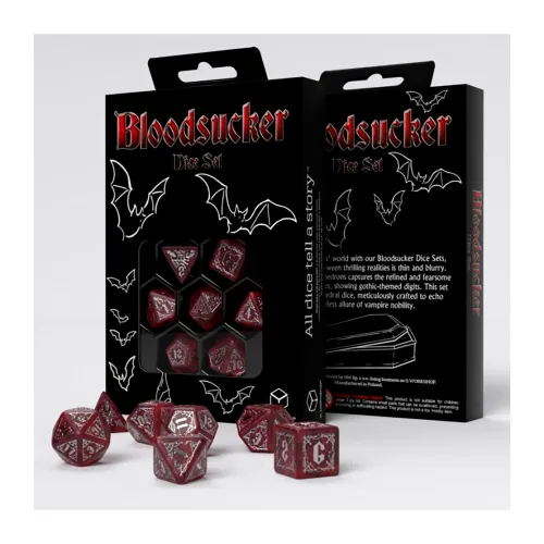 Släpp lös nattens kraft och behärska skuggorna vid ditt spelbord med Q WORKSHOP Bloodsucker Dice Set. Mästerligt tillverkade för entusiaster av gotisk skräck och mörk fantasy, är detta tärningsset det ultimata tillbehöret för att ge dina vampyriska krönikor och kyliga äventyr liv. Varje slag är en händelse, genomsyrad av en atmosfär av dödlig elegans och uråldrig kraft, vilket gör dessa tärningar till ett viktigt verktyg för alla spelledare eller spelare som vill uppnå total inlevelse i sin berättelse.