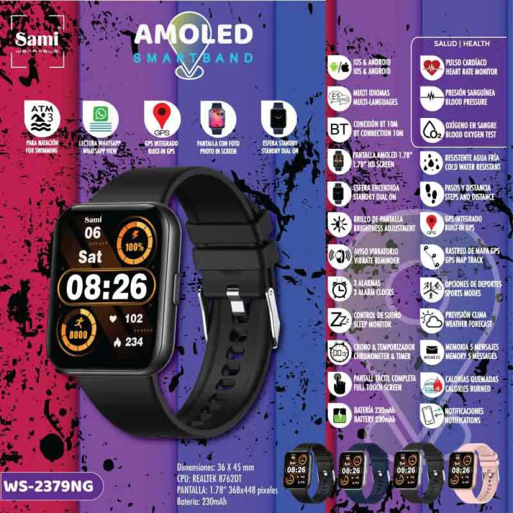 SAMI 3Atm GPS Smartwatch är din perfekta följeslagare för en hälsosam och uppkopplad livsstil. Denna eleganta och stilrena smartklocka kombinerar avancerade funktioner med en bekväm design, vilket gör den idealisk för både vardagsbruk och intensiva träningspass.