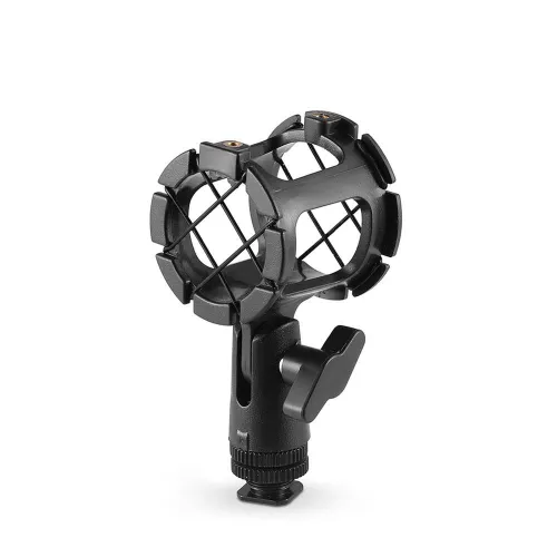 SmallRig mikrofonstötfäste för kameraskor och bomstolpar 1859 har en fyrapunktsupphängning för hagelgevär och andra cylindriska mikrofoner som mäter 0,59 1,57´´ (15 40 mm) i diameter. Stötfästet vinklas enkelt med justeringsratten. Det finns en inbyggd sko för kameramontering, och en 3/8´´ 16-gängad anslutning vid basen monterar stötfästet på bomstänger och universella handtag.