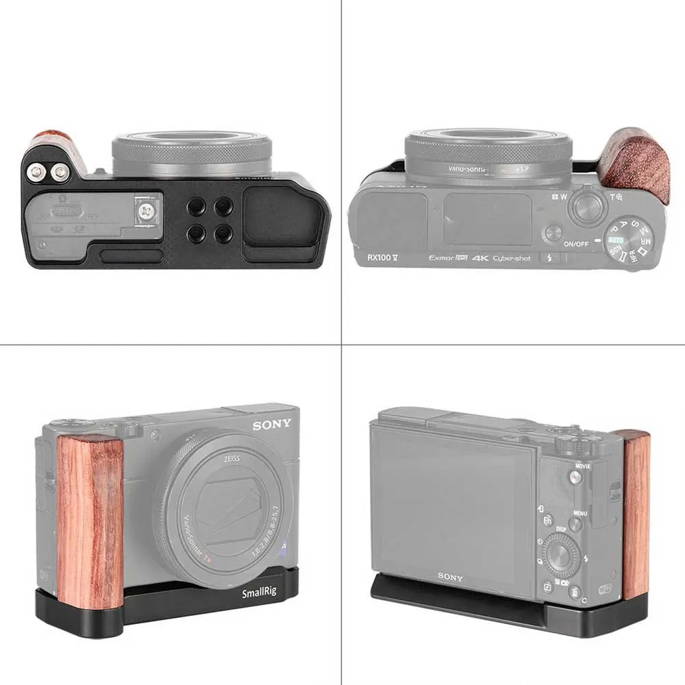SmallRig L-formad trägrepp 2248 är designad för SONY RX100 M3/M4/M5/M5A. Den låser kameran ordentligt via en skruv i botten. Trägrepp på höger sida lägger till storleken på kameragreppet vilket ger en bättre handhållen fotograferingsupplevelse. Och batteriluckan är åtkomlig med detta grepp påsatt. Dessutom låter den vända LCD-skärmen och kommer åt alla portar och knappar på kameran. Dessutom har den extra fyra 1/4'' 20 gängade hål på botten för att fästa stativplåtar som SmallRig Arca Plate 2146. Och den når fortfarande till batteriluckan med stativplåtar. Dessutom är den kompatibel med Peak Design-remmen. Med de lätta och kompakta funktionerna behåller den kamerans fickadesign.