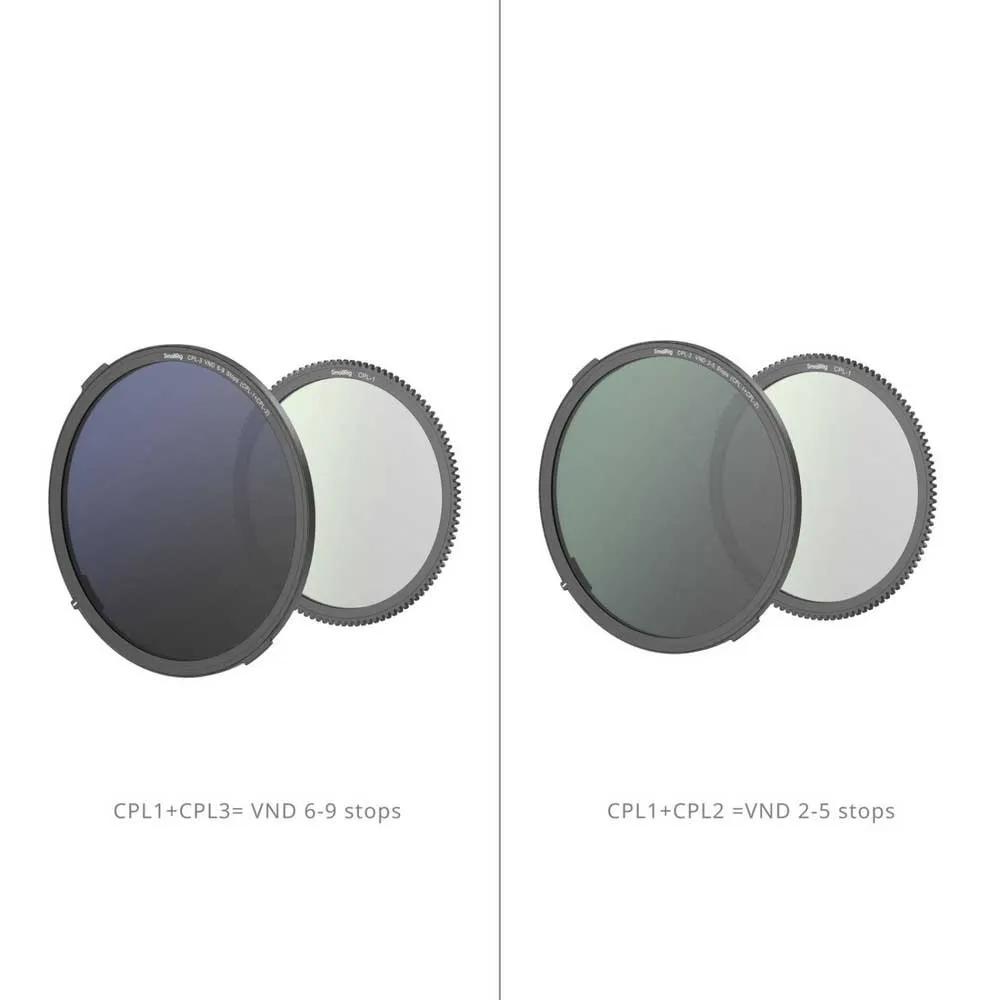 Detta kit innehåller två separata Variable Neutral Density (VND)-filter för att täcka ett brett spektrum av ljusscenarier. Det första filtret erbjuder 1 till 5 stegs ljusreducering, perfekt för att bibehålla en bred, filmisk bländare för grunt skärpedjup under måttligt ljusa dagar. Det andra filtret ger en kraftfull 6 till 9 stegs reducering, vilket gör att du kan fotografera med vidöppna bländare i starkt solljus eller uppnå fantastiska långtidsexponeringseffekter som silkeslent vatten och eteriska molnrörelser, även mitt på dagen. Båda filtren har fysiska hårda stopp i varje ände av sitt område, vilket förhindrar oavsiktlig överrotation och eliminerar den fruktade "X-mönster"-korspolarisationseffekten som plågar VND:er av sämre kvalitet.