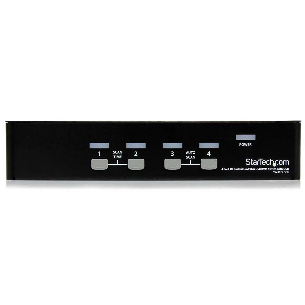 Styr upp till 4 VGA- och USB-datorer från ett enda tangentbord, mus och bildskärm. SV431DUSBU 4-port 1U Rackmonterbar USB KVM-switch med OSD låter dig styra flera USB-baserade datorer från en enda konsol (USB-tangentbord, USB-mus, bildskärm).