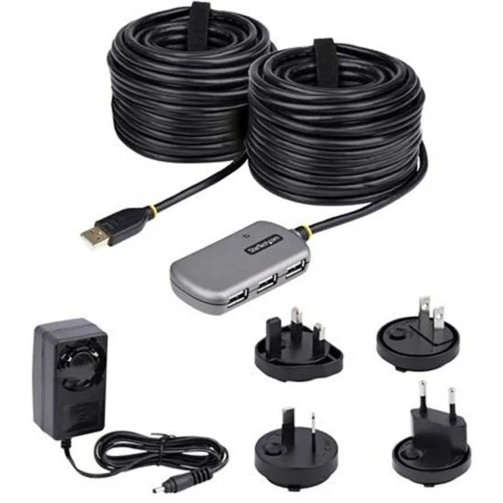- Aktiv USB-förlängare med lång räckvidd: USB-A-hubb med 4 USB 2.0-portar och 24 m aktiv förlängningskabel - Strömförsörj USB-kabeln med busström eller den medföljande nätadaptern - Lägg till en andra USB-hubb för en maximal räckvidd på 48 m