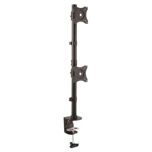 Det vertikala dubbla bildskärmsfästet rymmer två skärmar, varandra i vertikal konfiguration. Monitornas höjd kan justeras längs den 27,5 ”(700 mm) polen.