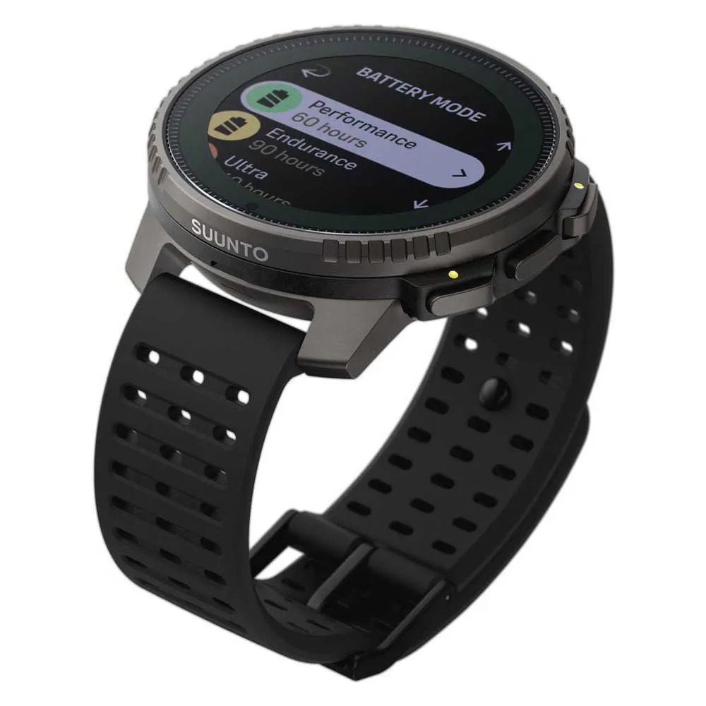 - Suunto Vertical offrar inte noggrannheten för längre batteritid. Den kommunicerar med alla fem stora satellitsystemen via Dual Frequency – en expressväg för ett snabbare och pålitligt signal.Batteritidjämförelsen genomfördes i träningsläge i soliga förhållanden (50 000 lux) med ett loggningsintervall på en sekund.