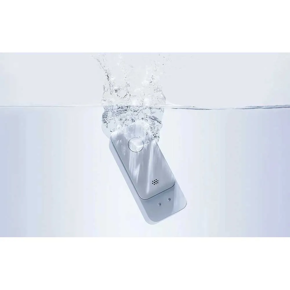 - Det nedsänknings- och fukttåliga höljet gör sensorn lämplig för alla förhållanden – i badrummet, köket, tvättstugan eller pannrummet. Och tack vare sin robusta konstruktion behöver du inte oroa dig för dess hållbarhet. Batteridriften varar upp till 2 år. Avsaknaden av sladdar gör att du kan placera den exakt där du behöver den som mest, utan att fundera på var uttaget finns.