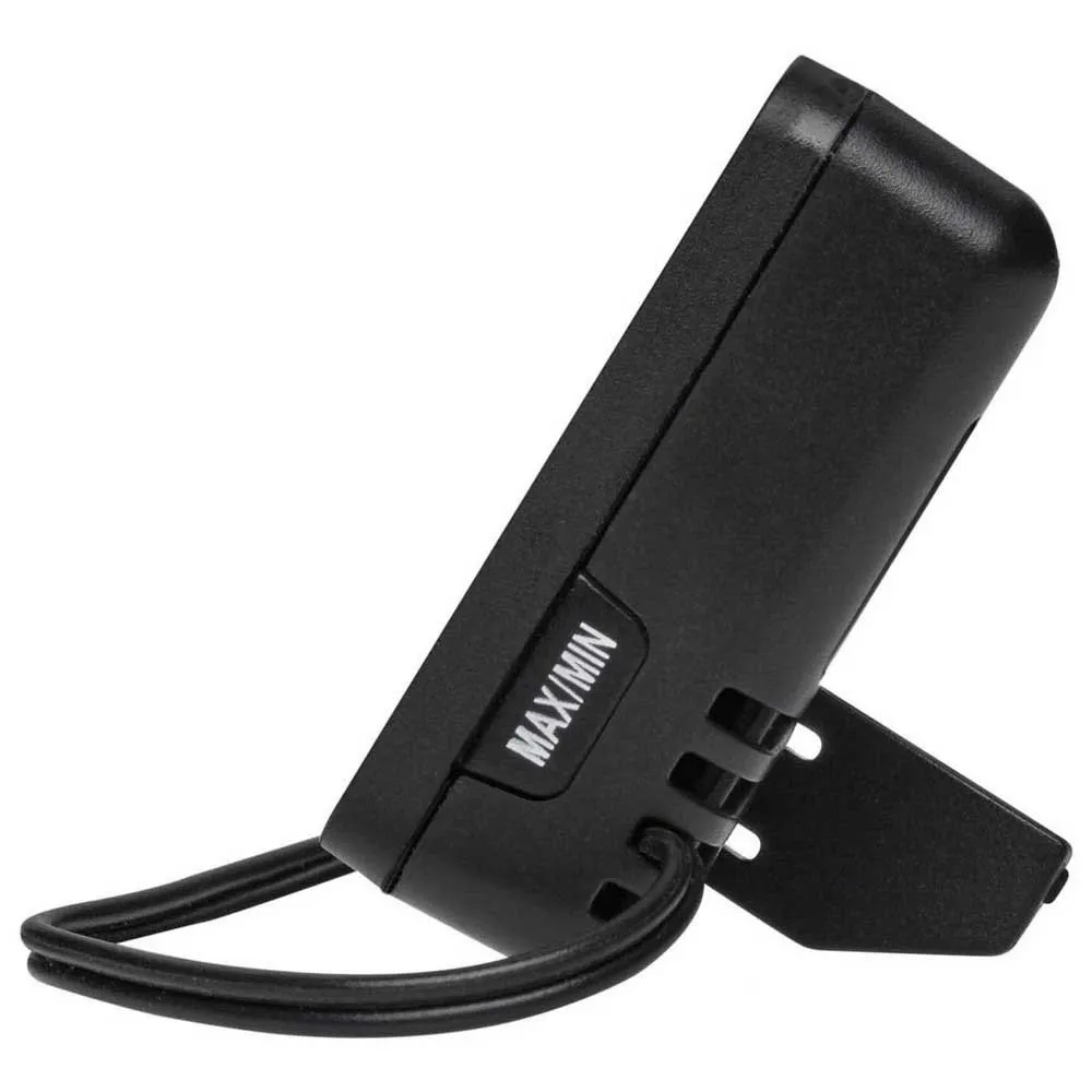 Denna kompakta termometer är idealisk för samtidig mätning av inomhus- och utomhustemperatur. Du kan byta från rumstemperatur till utomhusdisplay med en knapptryckning. En ständigt föränderlig display (var 5:e sekund) kan också ställas in. Maximi- och minimivärdena sparas och kan återkallas. Två små magneter på baksidan fäster på metallytor. Alternativt kan du använda det utfällbara stativet. När den placeras vid fönstret, leds sensorkabeln helt enkelt ut för att mäta utomhustemperaturen. Användningsmöjligheterna för termometrar med sensorkablar är fördelaktiga. Den vattentäta sonden tillåter även användning i bilen, kylskåpet eller akvariet.