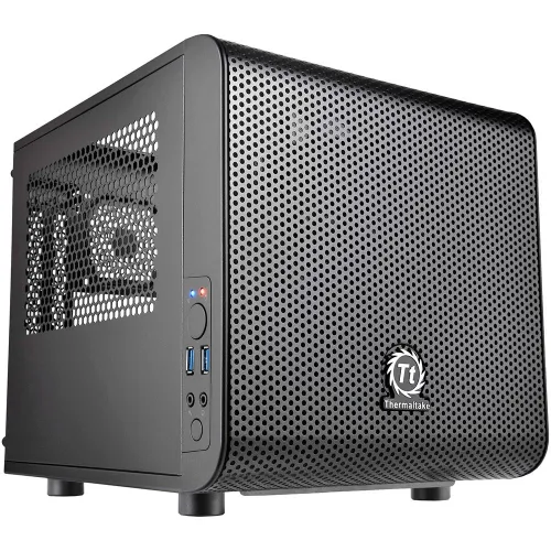 Thermaltake Core V1. Formfaktor: Kub, Typ: PC, Material: SPCC. Strömförsörjning: botten. Främre fläktdiametrar som stöds: 120.140.200 mm, Bakre fläktdiametrar som stöds: 80 mm. Stödda hårddiskstorlekar: 2,5,3,5´´. Bredd: 260 mm, Djup: 316 mm, Höjd: 276 mm