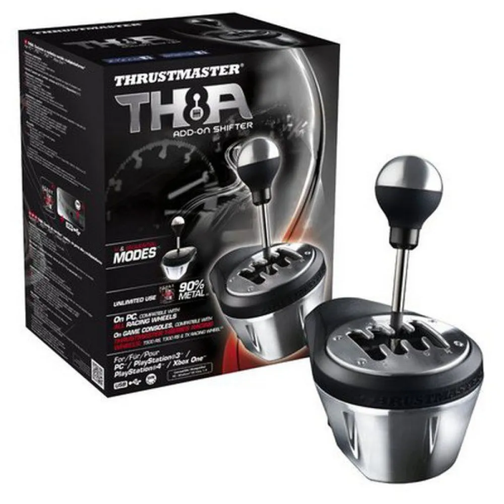 Th8a-växelspaken är en förstklassig simuleringsprodukt som hyllas för sin solida konstruktion av hög kvalitet som ser ut och känns som en riktig manuell bilväxelspak. Den har utmärkt känslighet och mångsidigheten att växla mellan ett 7-växlat H-mönster och en sekventiell växellåda. Denna dubbla funktionalitet gör denna tåliga och realistiska växelspak till en starkt rekommenderad, fantastisk utrustningsdel för alla racingriggar, och erbjuder en förstklassig, taktil upplevelse.