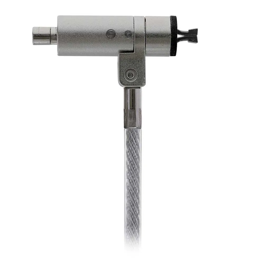 Ultratålig, flätad stålkabel med PVC-beläggning och zinklås. Gör att du enkelt kan fästa enheten vid skrivbordet. Tunna och justerbara svängbara huvuden för att fästa den bekvämt, oavsett datorns position. Enkel låsning med 1 klick tack vare dess tryckknapp. Levereras med två personliga nycklar, exklusive masternyckel.