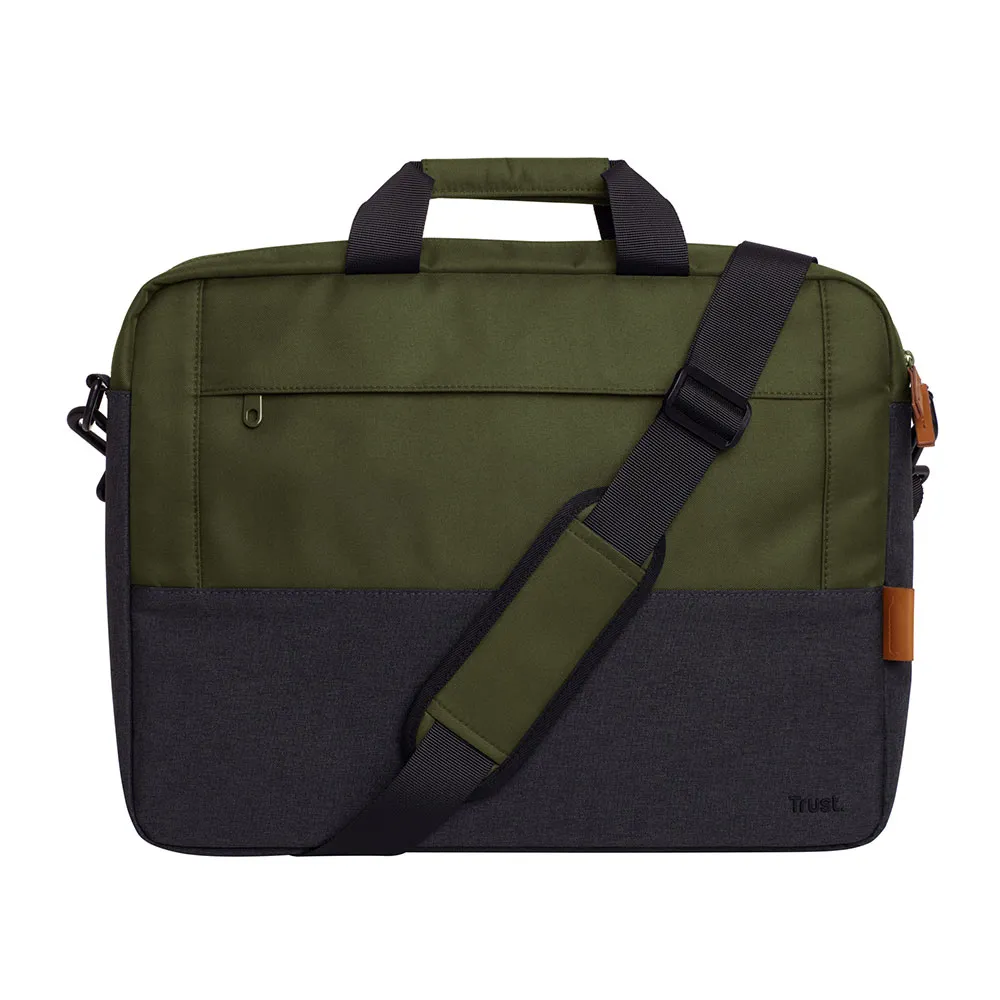 - Denna laptopväska har designats för att passa allas stil. Den kan bäras i handtaget, med den justerbara och avtagbara vadderade axelremmen, eller med hjälp av det bekväma trolleybandet.