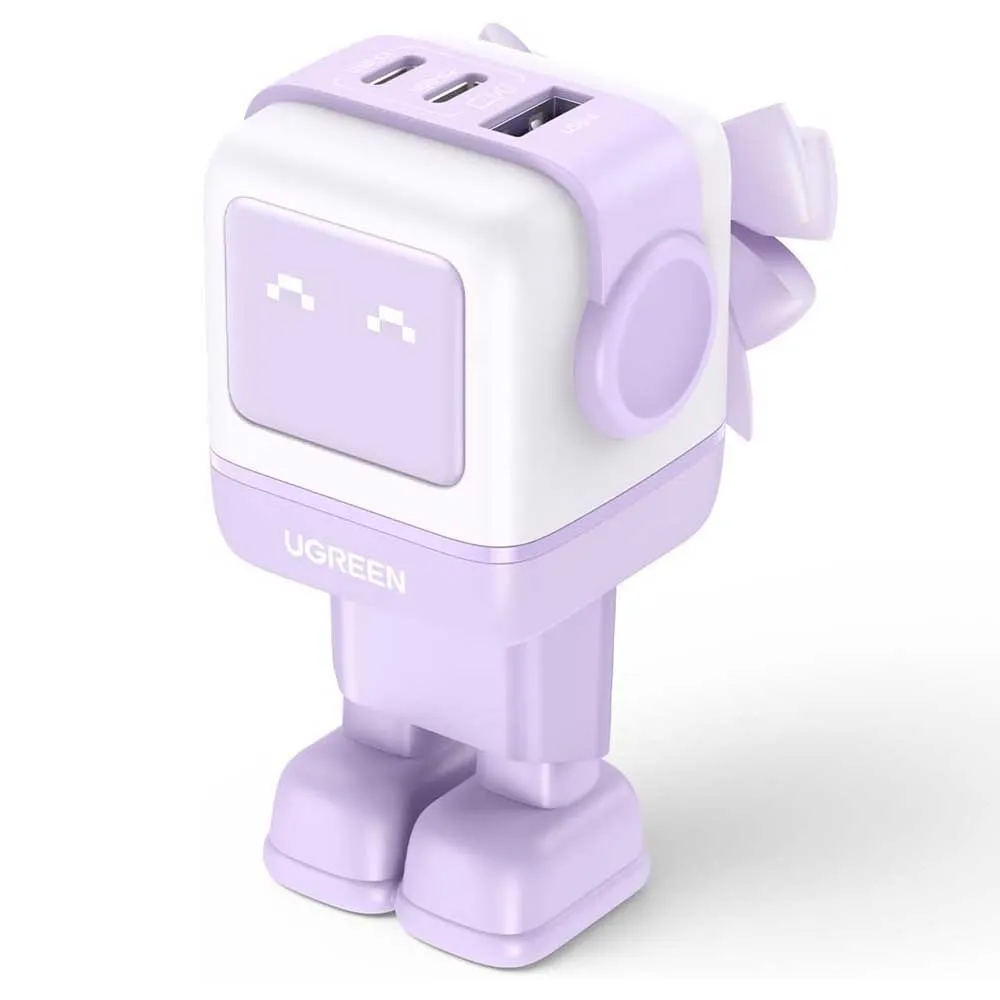Möt Ugreen Nexode RG 65W 3-portars GaN laddningsstation, det revolutionerande tillbehöret som ger kraft, personlighet och praktiskhet till ditt skrivbord. Långt mer än en enkel strömadapter är Nexode RG (Robot GaN) en unikt designad, höghastighetsladdningshub som är perfekt för att driva dina surfplattor, e-läsare, bärbara datorer och smartphones. Dess charmiga robotdesign är inte bara för utseendets skull; den kreativa LED-displayen fungerar som ett mini robotansikte och visar olika uttryck för att indikera laddningsstatusen för dina enheter, vilket ger en touch av rolighet till din teknikuppsättning.