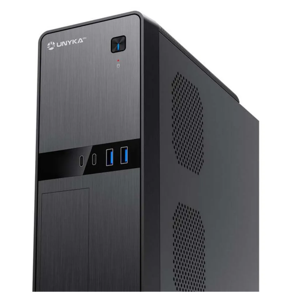 Fronten på UK2011 Slim MATX-kabinettet har en aluminiumeffektfinish, vilket ger den en slank och modern look. Förutom sin attraktiva design har kabinettet två USB 3.0-kontakter och två Type C (USB 2.0)-kontakter, vilket gör den perfekt för både professionella och personliga miljöer. Den innehåller en 450W SFX-nätadapter, vilket gör den till ett praktiskt alternativ för de flesta användare. Dess kompakta och funktionella design gör den till en idealisk lösning för projekt som kräver en låda utan excentriciteter, men med alla nödvändiga funktioner. Och tack vare de två Type C-kontakterna är denna låda förberedd för den senaste generationen av marknaden som kräver denna typ av anslutning.