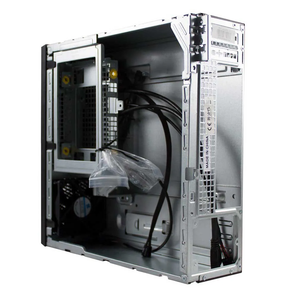 När det gäller stålchassit har det en kompakt struktur, men med ett väl fördelat utrymme och kan rymma upp till 2 hårddiskar, en fläkt och ett grafikkort upp till 160 mm. Den har en modern och elegant design som framhäver sin innovativa front med en blå remsa som skiljer sig från resten av elementen.