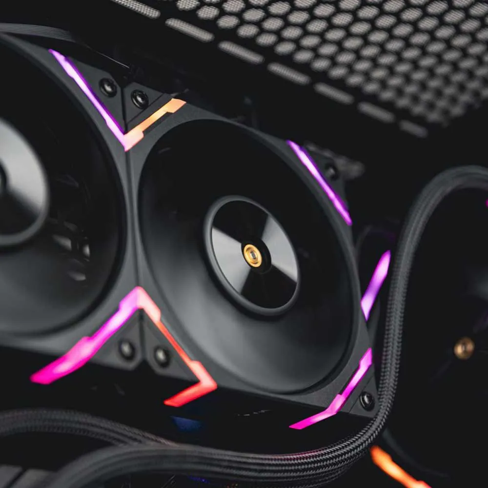 - Högpresterande fläktar med fluiddynamiska lager: 3x Valkyrie X12-radiatorfläktar med högt statiskt tryck ger kraftfullt luftflöde upp till 80 CFM vardera, justerbart via PWM (800-2150 RPM ±10%) för att leverera imponerande CPU-kylprestanda med en maximal ljudnivå på endast 29dBA och 3.14mmH2O statiskt tryck