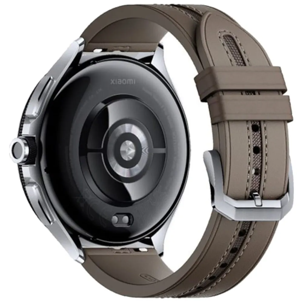 Xiaomi Watch 2 Pro Bluetooth i silverfärg med brunt läderarmband, 24/7-sensorer och mer än 150 sportlägen.