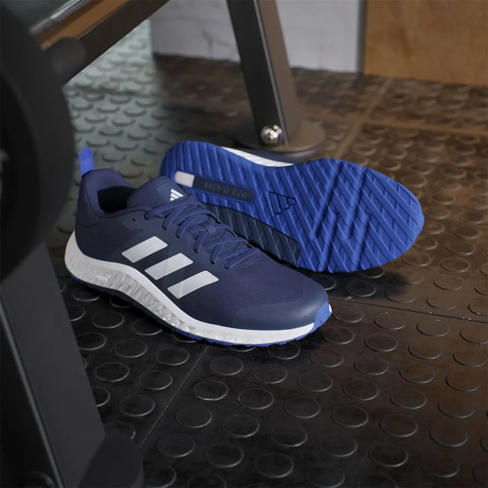 Begynd din træningsrejse med ADIDAS Everyset træningsskoene. Designet til at hjælpe dig med at perfektionere din form, giver disse sko en stabil, jordnær følelse. Den bløde, åndbare strikoverdel giver en tætsiddende pasform, mens den innovative mellemsål med dobbelt densitet leverer den perfekte balance mellem fast stabilitet og blød komfort. En multidirektionel ydersål af gummi sikrer et solidt greb ved hver bevægelse. Fremstillet med mindst 50% genanvendt indhold i overdelen, kan du træne med selvtillid i en sko, der er bedre for planeten