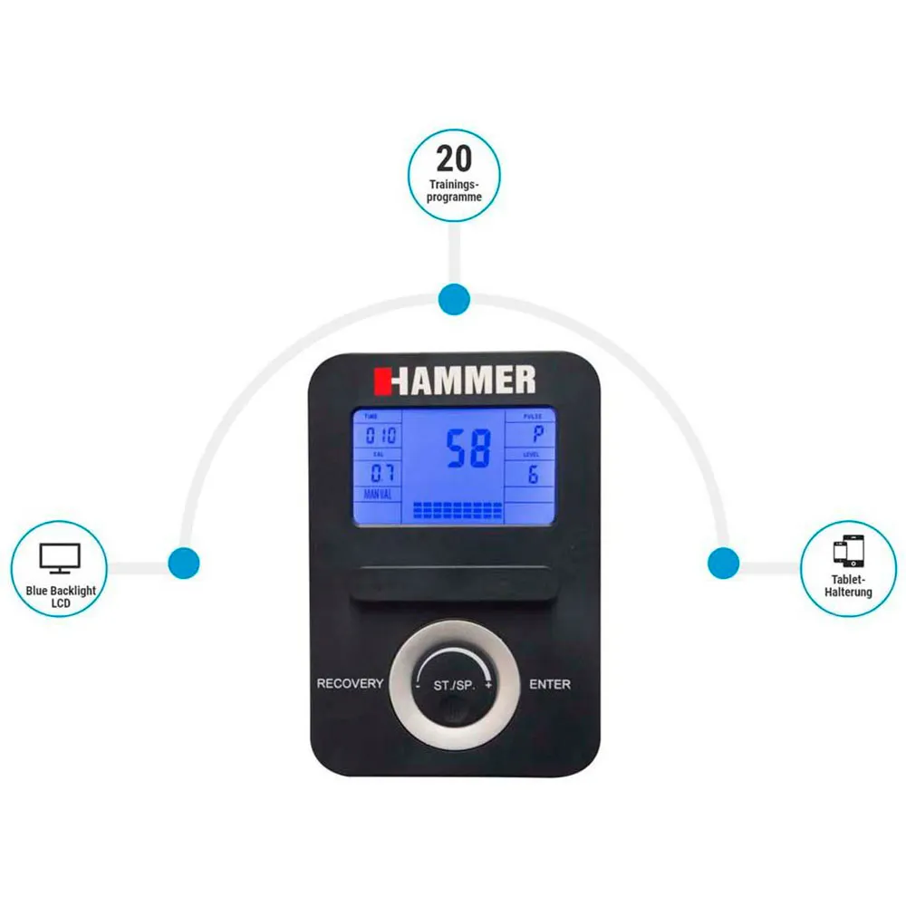Den integrerede LCD-konsol giver realtidsfeedback på dine træningsdata, herunder tid, distance, slag pr. minut, forbrændte kalorier og puls. Disse omfattende data giver dig mulighed for at overvåge din fremgang, sætte mål og forblive motiveret gennem hele din fitnessrejse.