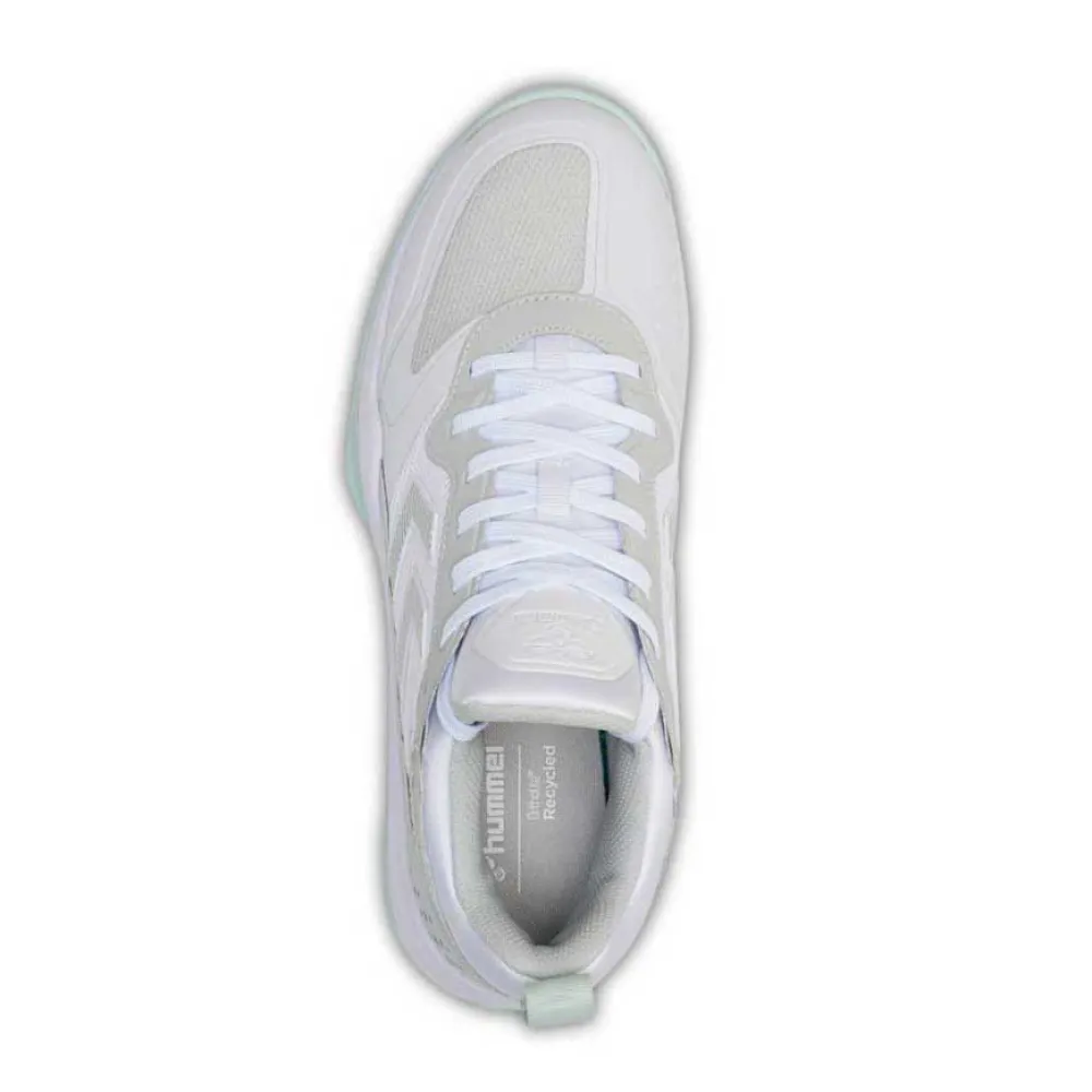 Disse træningssko er lavet med yderst åndbare og fuldstændigt genanvendte mesh-overdele og har støttende syntetiske overlag og klassiske hummel® TPU-vinkler for at fuldende looket.