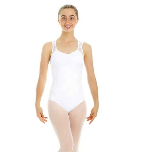 Ærmeløs danse-leotard, medium scoop-ryg og knib foran.