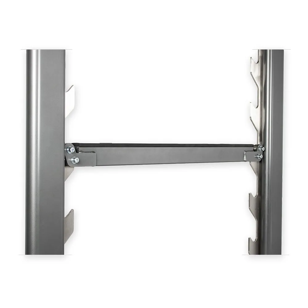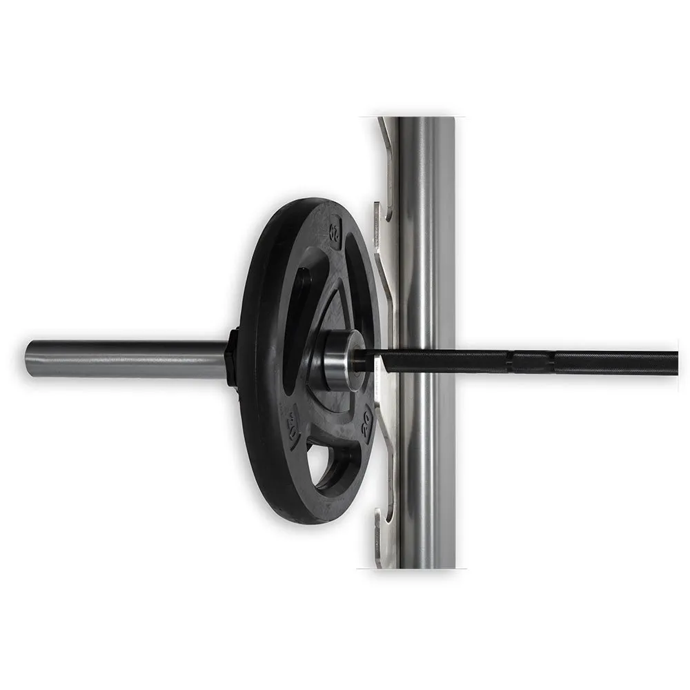 Beskyttende Kontaktpunkter: J-krogene og sikkerhedsspotterarmene er foret med en tæt syntetisk polymer. Dette højkvalitetsmateriale beskytter effektivt din vægtstang mod ridser og skader, reducerer støj under genplacering og bidrager til en mere raffineret og professionel træningsoplevelse.