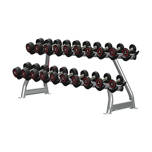 Dette rack har en gennemtænkt konstrueret to-niveau struktur, der tilbyder to forskellige højder til placering af dine håndvægte. Dette intelligente, vinklede design er ikke kun for æstetik; det giver overlegen ergonomi og tilgængelighed. Placer dine lettere, mere hyppigt anvendte vægte på det øverste niveau for hurtige greb og dine tungere sæt på det nederste niveau, hvilket reducerer belastningen på ryggen, når du løfter og lægger dem tilbage. Dette intuitive layout giver dig mulighed for øjeblikkeligt at identificere og vælge den vægt, du har brug for, hvilket sparer værdifuld energi og opretholder dit træningsmomentum.