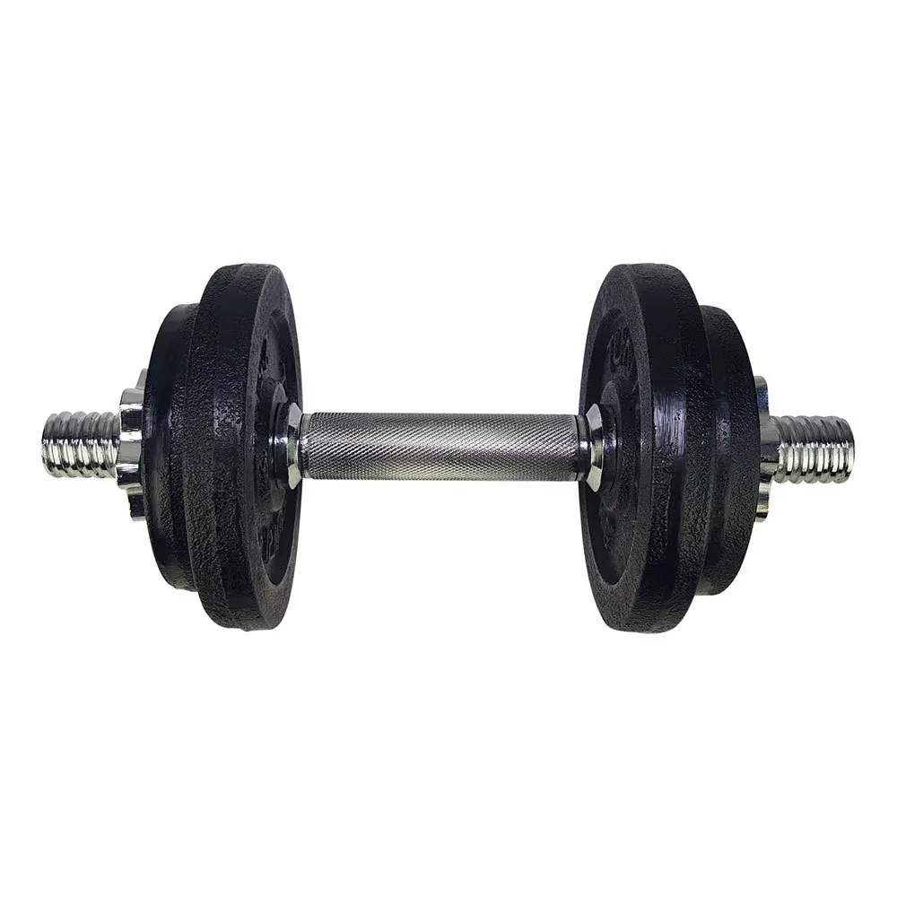 Praktisk, fordi du selv kan bestemme den ønskede vægt ved at tilføje vægtplader til håndvægtstangen.