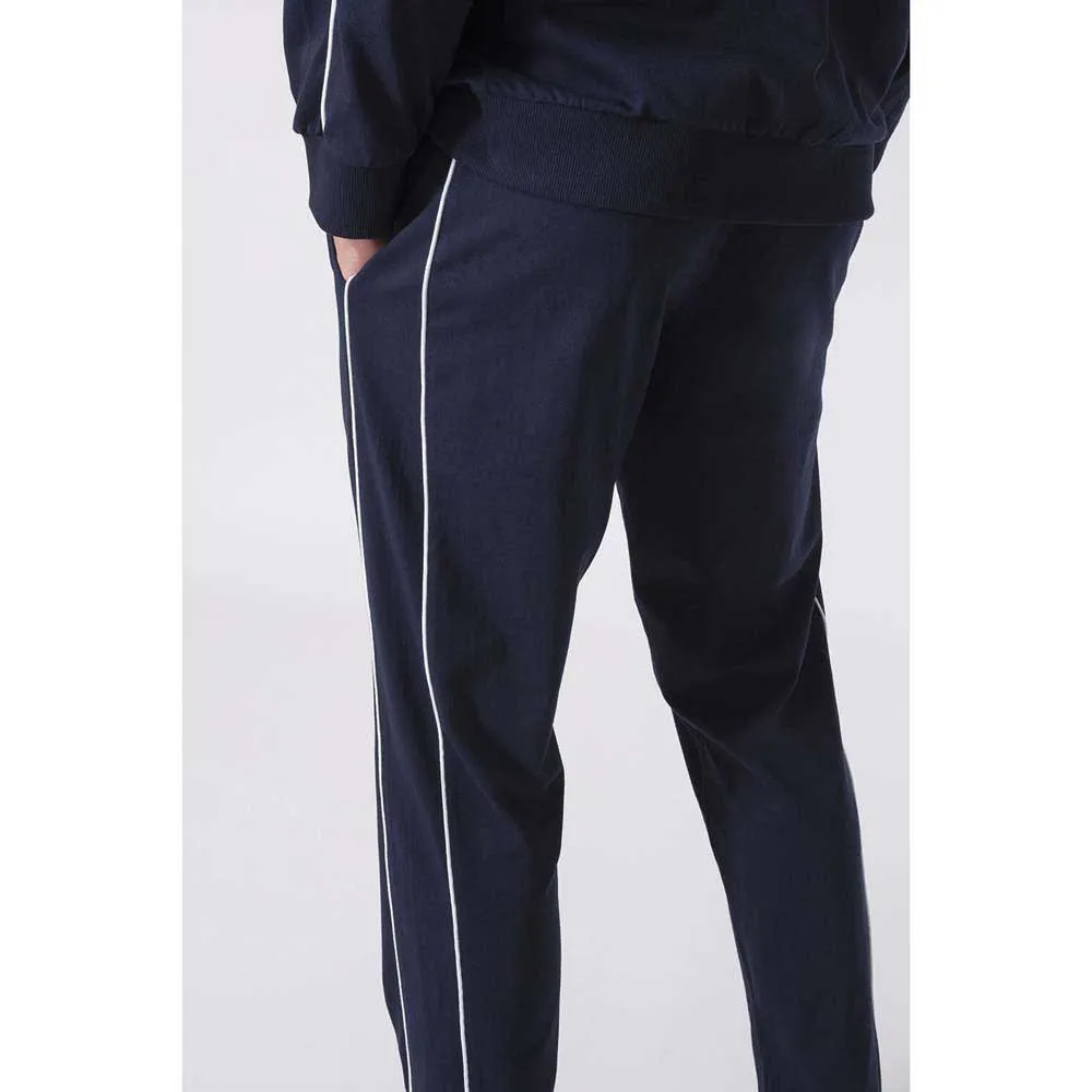 Geradlinige Hose aus bequemem, schwerem Baumwolljersey. Das schlichte und essentielle Design wird durch die kontrastfarbene Paspelierung entlang der Beine aufgewertet, die den sportlichen Geschmack dieses Kleidungsstücks unterstreicht. Tragen Sie sie mit der dazugehörigen Jacke für einen totalen Sportswear-Look.