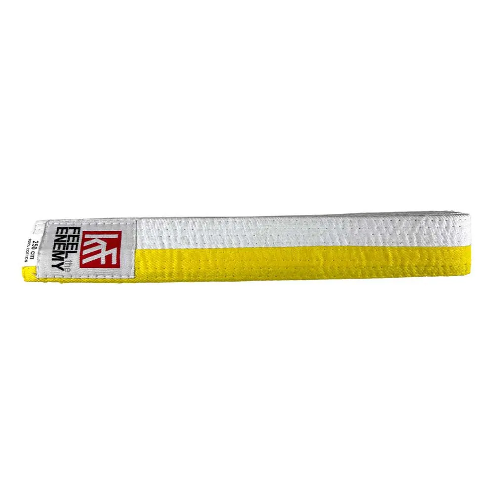 Hergestellt aus einer Mischung aus Baumwolle und Polyester, bietet dieser Gürtel Komfort und Flexibilität während der Trainingssitzungen und Wettkämpfe. Die weiße Farbe symbolisiert Reinheit und bedeutet ein Anfänger-Niveau, während die gelbe Streifen den Fortschritt anzeigt und den Träger auf das nächste Level vorbereitet.