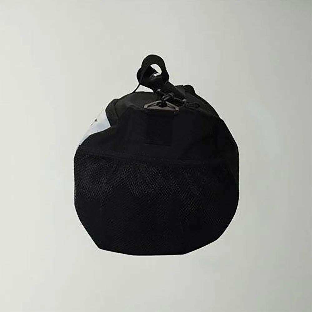 Zylinderförmige Sporttasche, Logo auf der Vorderseite aufgedruckt, verstellbare Griffe und Schultergurt.