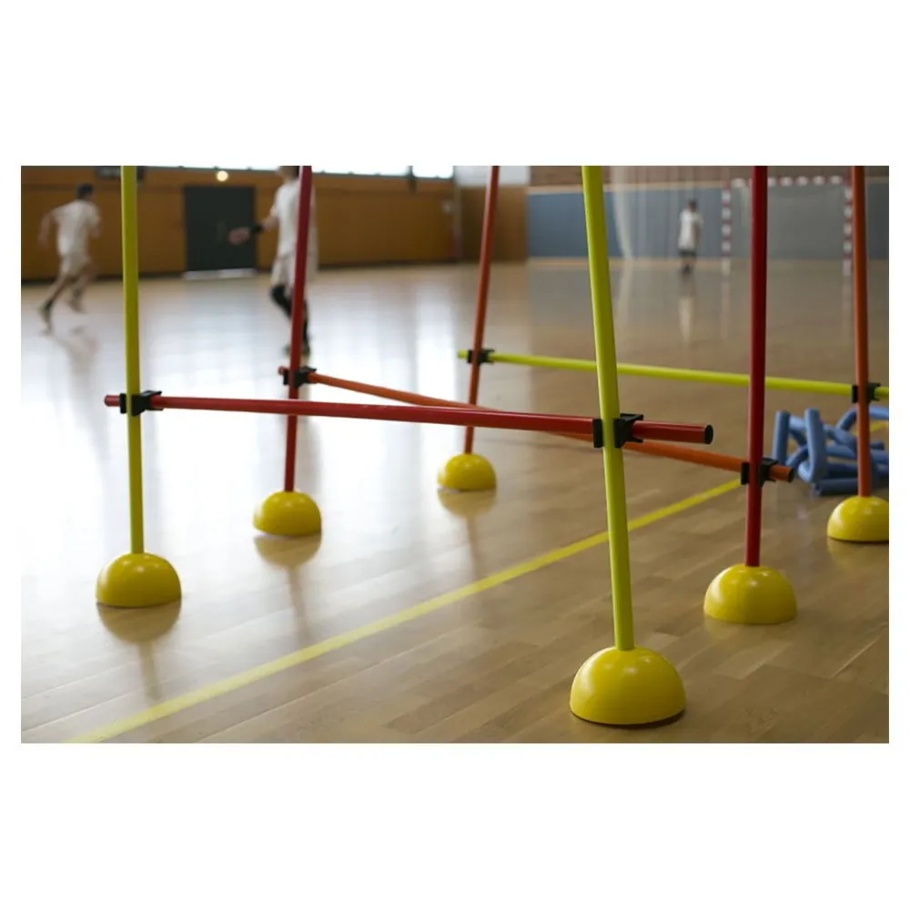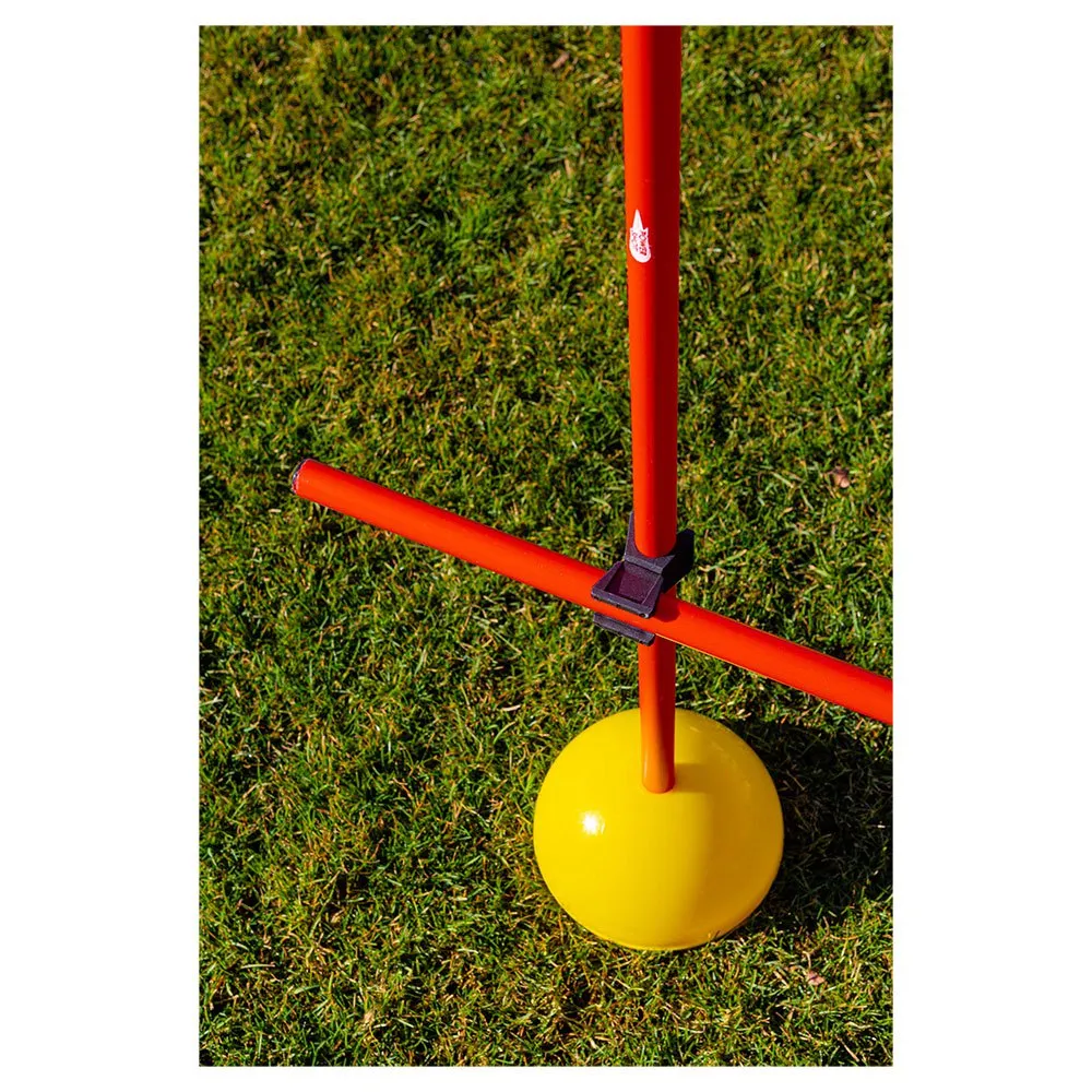 Komplettes Indoor-Trainingsset zum Üben von Koordination, Geschwindigkeit und Sprüngen; angepasst für Innen- oder synthetisches Außengelände. Bestehend aus 9 Pfosten mit einer Größe von jeweils 152 cm und 6 Befestigungsklammern. Transporttasche inklusive.