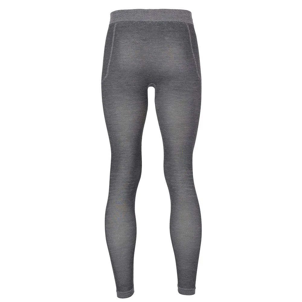 Warme, atmungsaktive und nahtlose erste Schichthose aus einer Mischung aus Tencel und Wolle im Kontakt mit der Haut und Elasthan, das außen mit recyceltem Seacycle-Polyamid beschichtet ist.