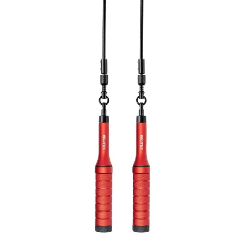 Entfesseln Sie Ihr Potenzial mit dem Velites Earth 2.0, einem Premium-Springseilsystem, das für Geschwindigkeit und Kraft entwickelt wurde. Perfekt zum Meistern von Double-Unders und zum Bewältigen von HIIT-Workouts. Seine Griffe aus Aluminium in Luft- und Raumfahrtqualität verfügen über ein doppeltes Kugellagersystem für extrem geschmeidige, schnelle Rotationen. Der gerändelte Griff gewährleistet volle Kontrolle während intensiver Trainingseinheiten. Dieser Red Dot Design Award Gewinner ist vollständig anpassbar mit optionalen Seilen und Gewichten. Enthält ein strapazierfähiges 4-mm-Seil und exklusiven Zugang zur Velites Trainings-App, um Ihre Fitnessreise zu bereichern