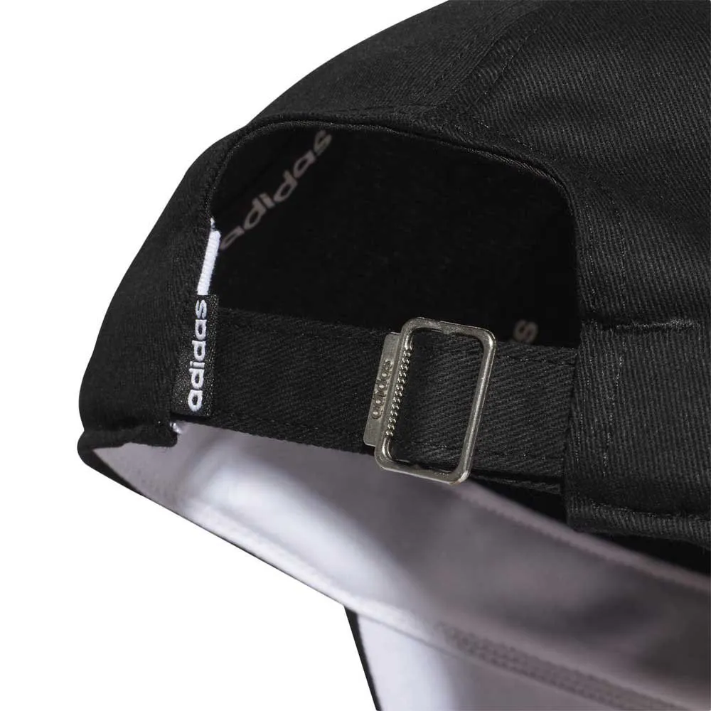 - This adidas baseball cap is a sure hit. Cotton twill fabric feels soft to the touch. An adjustable back strap customises the fit. Bold 3-Stripes finish the pre-curved brim.