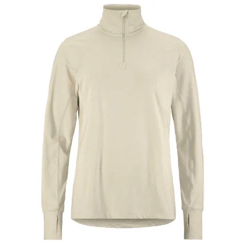 Flow HZ LS is a soft and functional half-zip jersey that excels as both a baselayer and a standalone garment for running, training, powerwalking and similar physical activities. This multi-purpose half-zip jersey is made from a functional blend of recycled polyester and elastane, with a subtly peached surface for a soft feel. The long-sleeve jersey also features a slightly more relaxed fit than traditional tight-fitting baselayers, enhancing versatility and adaptability. Wear it solo or layer under a jacket or mid-layer shirt for added insulation in colder conditions.