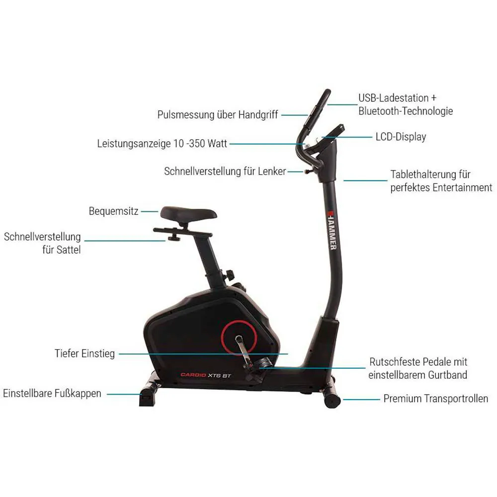 Stay connected and motivated with the integrated Bluetooth connectivity. Pair the XT6 BT with your favorite fitness apps like Kinomap, Zwift, and iConsole+ Training for interactive training experiences, virtual rides, and data tracking. Immerse yourself in stunning virtual landscapes, compete with friends, and track your progress with ease. The backlit LCD console provides clear and easy-to-read feedback on your workout data, including time, distance, speed, calories burned, pulse, and resistance level. Monitor your performance and stay on track towards your fitness goals.
