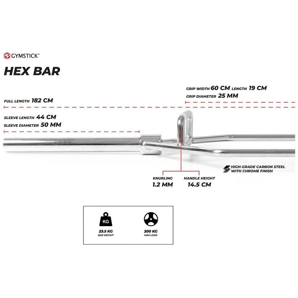 The GYMSTICK Hex Bar Chrome is a high-quality and durable piece of bodybuilding equipment designed to enhance your strength and muscle building workouts. Featuring a sleek chrome finish, this hex bar is not only robust but also visually appealing.