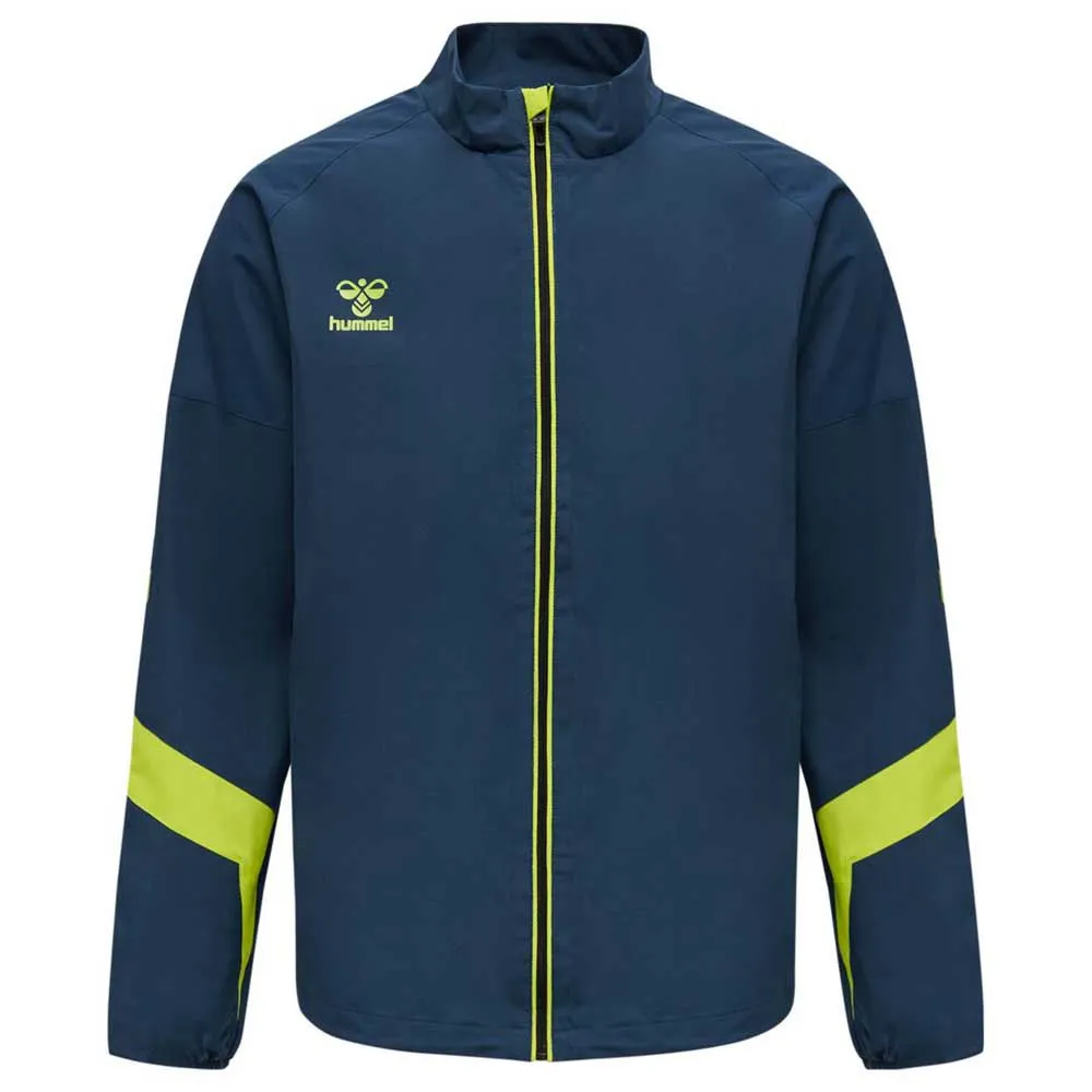 The hmllead training jacket kids is constructed from polyester fabric that´s woven in a way that allows for a degree of stretchiness. with a mesh lining inside, this hummel® jacket delivers enhanced ventilation both on and off the field. the jacket also features wp3000 water repellent protection to block out rain and wind. the full zip front opening features a protective zip garage and contrast piping.